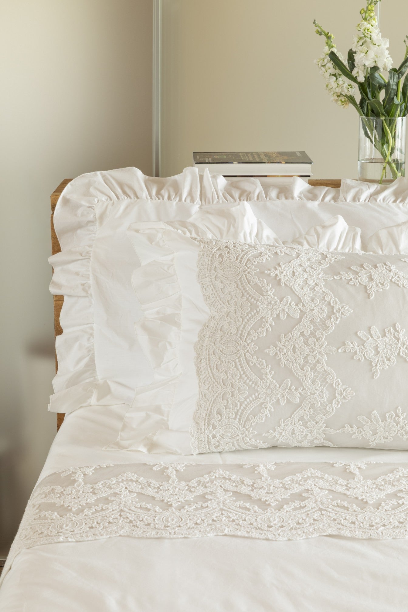 Realizzata con tessuti morbidi e avvolgenti, come la soffice spugna e il candido lino, ogni pezzo è impreziosito da pizzi e volant che aggiungono un tocco di eleganza e raffinatezza. Un vero lusso per il tuo bagno, per trasformare ogni momento di benessere in un'esperienza unica e avvolgente.