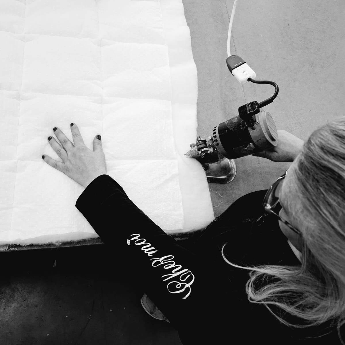 Il rumore delle forbici da sarta che tagliano il puro lino, il tic toc delle macchine da cucire, il sibilo delle taglierine, il rumore del tessuto strappato a mano, il calore dei capi che tornano dalla tintoria e sono appena stati essiccati, il profumo dello spray tessile che nebulizziamo sui capi prima di imbustarli, il telefono che squilla in continuazione, questo è il mondo di Chez Moi Italia.